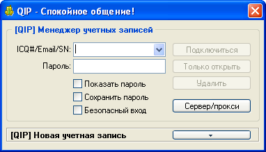 8. Свои UIN и пароль теперь вы можете ввести в любой ICQ клиент, например QIP 2005. Вход в QIP 20051. Скачиваем и устанавливаем клиент. 2. Вводим UIN и пароль, затем заходим в "Сервер/прокси"